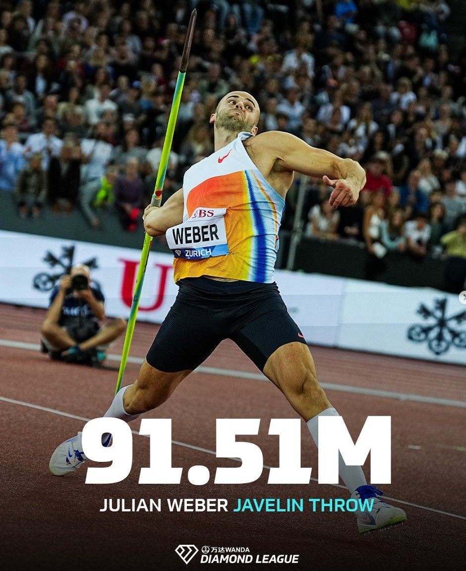 Kaum hatte der erste deutsche Diamond-League-Sieger des Abends die Mixed Zone verlassen, wurde es laut im Stadion. Den Jubel ausgelöst hatte ein weiterer DLV-Athlet: Julian Weber (USC Mainz). Gleich im ersten Durchgang steigerte der Europameister von 2022 seine eigene Weltjahresbestleistung von 91,06 auf 91,37 Meter. Und in Runde zwei legte er noch eine Schippe drauf: 91,51 Meter. So bescherte sich der zurzeit weltbeste Speerwerfer ein vorgezogenes Geschenk zu seinem 31. Geburtstag am Freitag. "Ich wusste, dass ich in guter Form bin", sagte der Sieger. "Aber ich hätte nicht gedacht, dass es heute so gut laufen würde. Die Technik hat gestimmt, das Timing. Es war ein überragender Wettkampf. Was hätte ich mir mehr wünschen können?" Das Podium komplettierten mit Respektabstand Weltmeister Neeraj Chopra (Indien; 85,01 m) und Keshorn Walcott (Trinidad & Tobago; 84,95 m). Zuletzt hatte es 2021 zwei deutsche Gesamtsiege in der Diamond League gegeben, damals gelang Johannes Vetter (LG Offenburg) und Christin Hussong (LAZ Zweibrücken) ein Speerwurf-Doppelschlag. Quelle: Leichtathletik.de