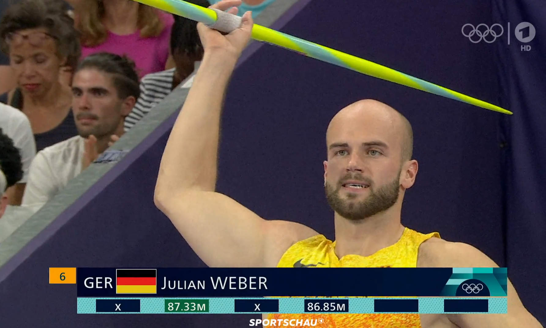 Seit der Einführung des neuen Speers hatten 87 Meter zuvor nur einmal nicht für eine olympische Medaille gereicht. Der Magdeburger Raymond Hecht wurde 2000 in Sydney mit 87,76 Metern Vierter. Zwei weitere Würfe von Julian Weber landeten jenseits der 85-Meter-Marke. Im zweiten Durchgang kam der Olympia-Vierte von Tokio schon auf 87,33 Meter, im fünften Versuch wurden 86,85 Meter gemessen. Zwei absolute Weltklasseweiten.