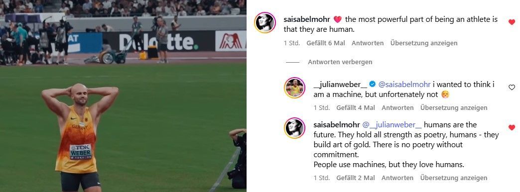 Besonders schöner Kommentar von Sarah Isabel Mohr auf Instagramm.